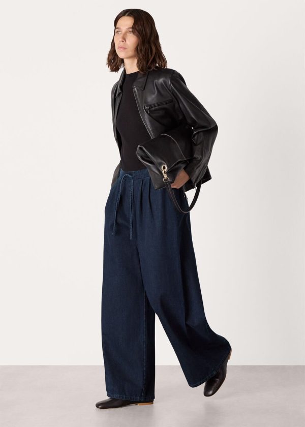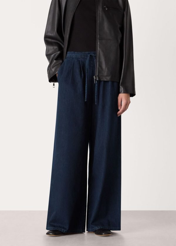 Engineered for effortless versatility, these Cotton Wide Leg Pleat Trousers seamlessly transition from professional settings to weekend adventures. Cut from premium pleated denim with a sophisticated dark wash, the wide-leg silhouette delivers contemporary style with exceptional comfort. The adjustable drawstring waist, gentle gathering, and functional pockets create the perfect smart-casual solution for your daily wardrobe.