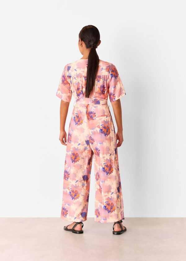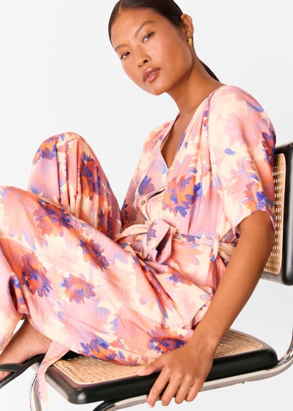 This stunning floral jumpsuit brings vibrant summer energy with its warm orange floral pattern and sophisticated black accents. Featuring a flattering V-neckline, short sleeves, and a defining waist belt, it’s your go-to piece for both sunny getaways and urban adventures.