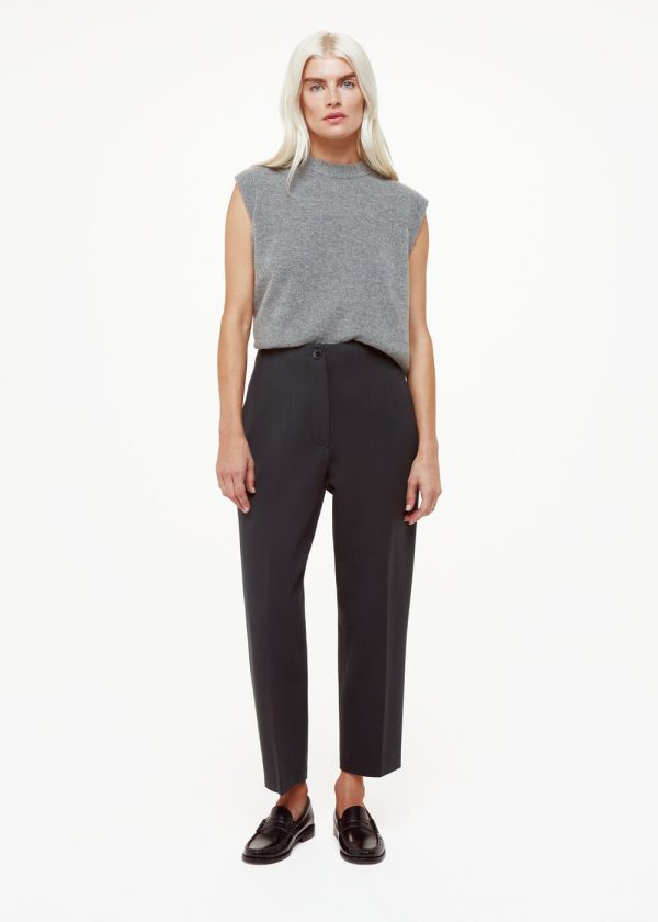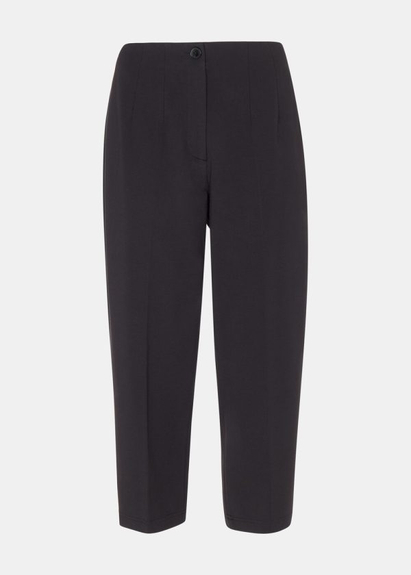 Elevate your professional wardrobe with these essential Ponte trousers featuring a modern slim fit and versatile carrot silhouette. The classic black shade effortlessly complements any color palette, making these trousers your go-to choice for creating polished office-to-evening looks. Crafted from premium Ponte fabrication, these trousers offer exceptional comfort and easy wearability, perfect for pairing with printed blouses and sophisticated knitwear.