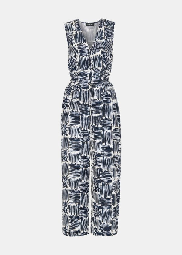 Planning your next getaway? Our Hatch Squares Jumpsuit delivers effortless vacation style with its comfortable relaxed fit and contemporary cropped silhouette. The distinctive navy hatch pattern creates a modern statement piece that transitions beautifully from day to evening. Crafted from lightweight, breathable fabric, this jumpsuit keeps you cool and stylish in warm weather.