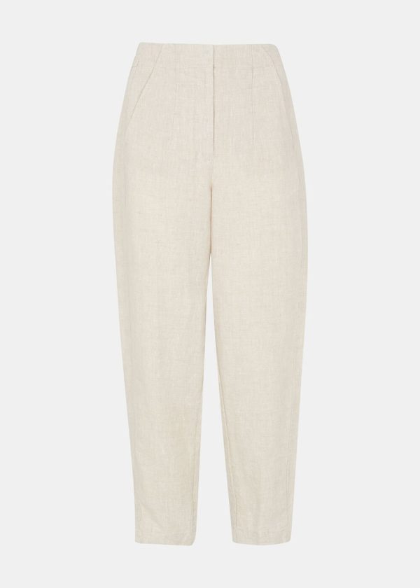 Elevate your everyday wardrobe with these beautifully crafted linen barrel leg trousers. Designed for ultimate comfort with a relaxed fit that moves with you, these pants feature a flattering high-waist silhouette that creates an elegant, lengthening effect. The warm oatmeal hue offers versatile styling options that pair effortlessly with your favorite relaxed tees and ballet flats for a chic, put-together look.