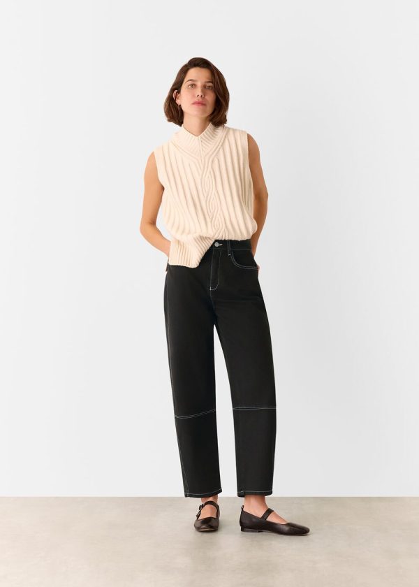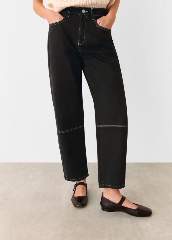 Elevate your everyday style with our reinvented Barrel Leg Jeans, featuring premium stretch denim and striking contrast stitching for a contemporary edge. These expertly crafted jeans deliver exceptional comfort with their signature high-rise waist and barrel-leg silhouette that skims through the thigh and crops perfectly at the ankle. Designed for versatile styling, they transition seamlessly from boots and loafers to sandals for effortless day-to-night wear.