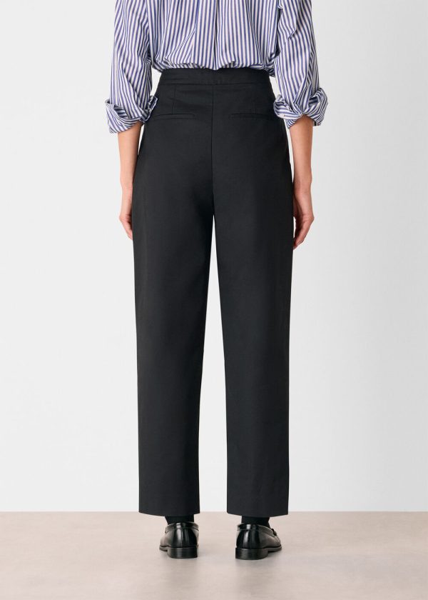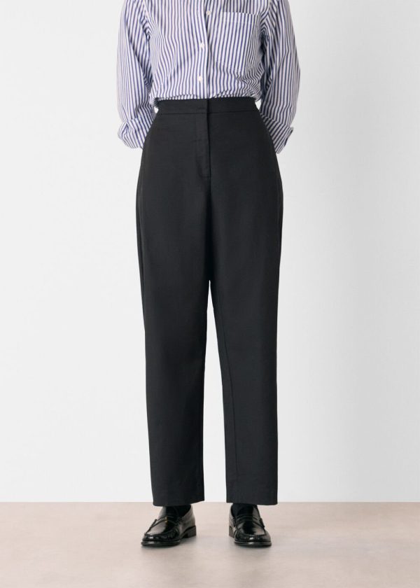Elevate your professional wardrobe with these essential black tapered trousers featuring sophisticated side pleat detailing. Perfect for the modern working woman, these trousers combine timeless style with exceptional comfort for all-day wear. The high-waisted design creates a flattering silhouette while the tapered leg offers a contemporary finish that transitions seamlessly from office to evening.