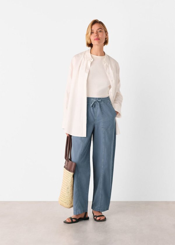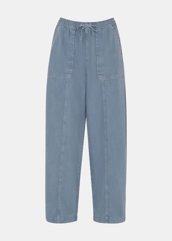 Experience ultimate everyday comfort with our Contrast Stitch Cotton Trouser, designed for effortless style and relaxed wear. These pale blue pants feature practical patch pockets, an adjustable elastic drawstring waist, and distinctive contrast stitching that adds sophisticated detailing.