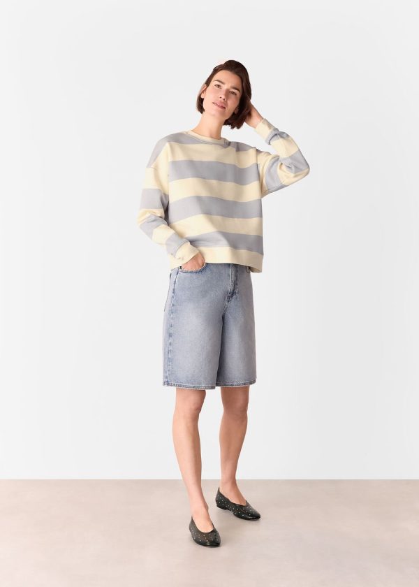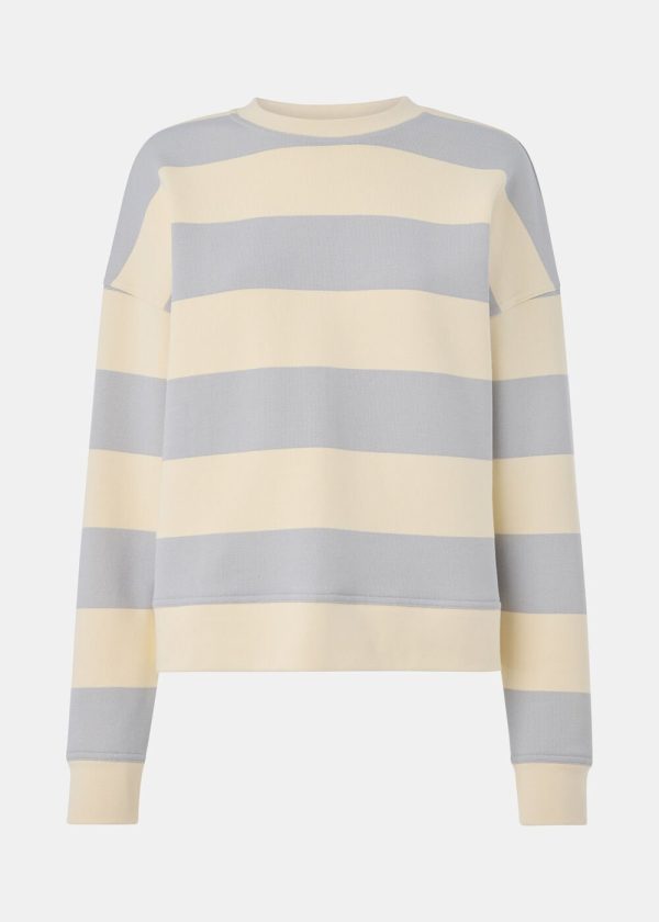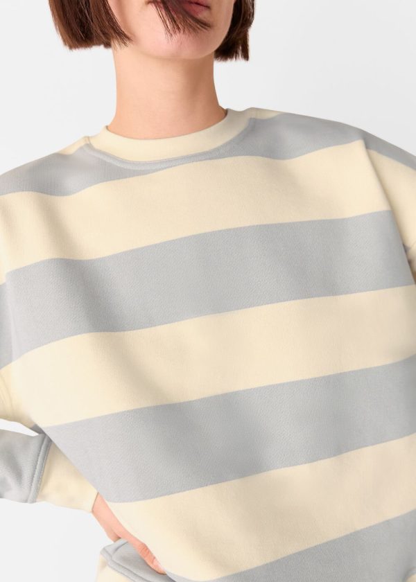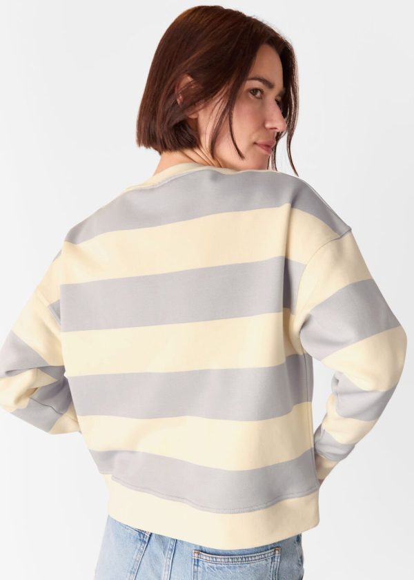 Meet your new go-to sweatshirt, expertly crafted to transition seamlessly between seasons. This eye-catching blue and multi-color striped design offers a relaxed, effortlessly cool vibe that pairs perfectly with your favorite bottoms. Tuck it into jeans or skirts for a versatile, put-together look that works from day to evening.