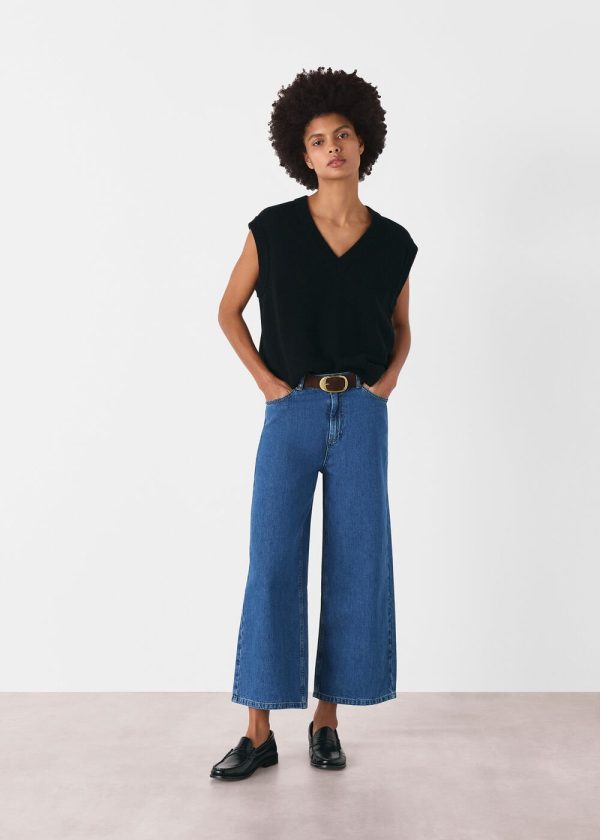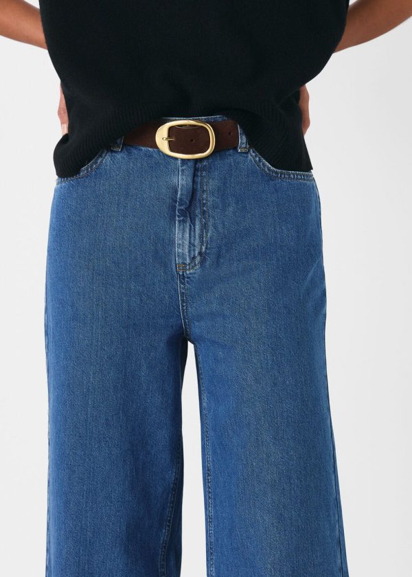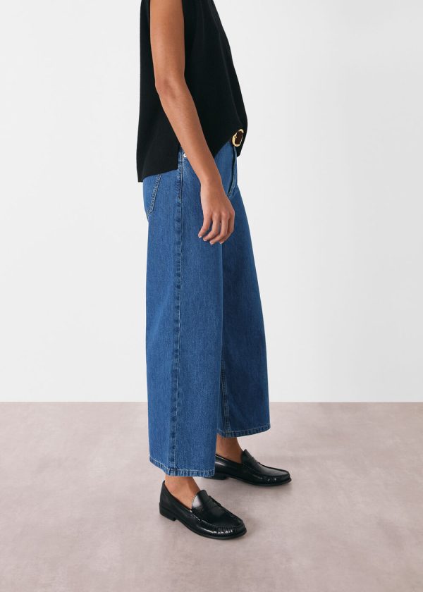 Our essential wide leg jean is expertly crafted from a comfortable lightweight denim fabric that delivers all-day ease and movement. Designed with a flattering high-waist silhouette that hits just above the ankle, we love pairing these with classic tees, sleek leather jackets, and casual sneakers for effortless everyday style.