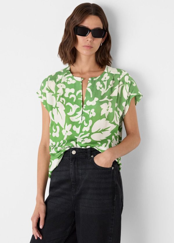 Elevate your summer wardrobe with this stunning floral statement piece. Our Floral Keyhole Blouse features lightweight, breathable fabric with a vibrant botanical print in refreshing green hues. Designed with short sleeves, an elegant keyhole neckline, and adjustable drawstring details, this blouse delivers sophisticated style perfect for brunch dates or casual outings.