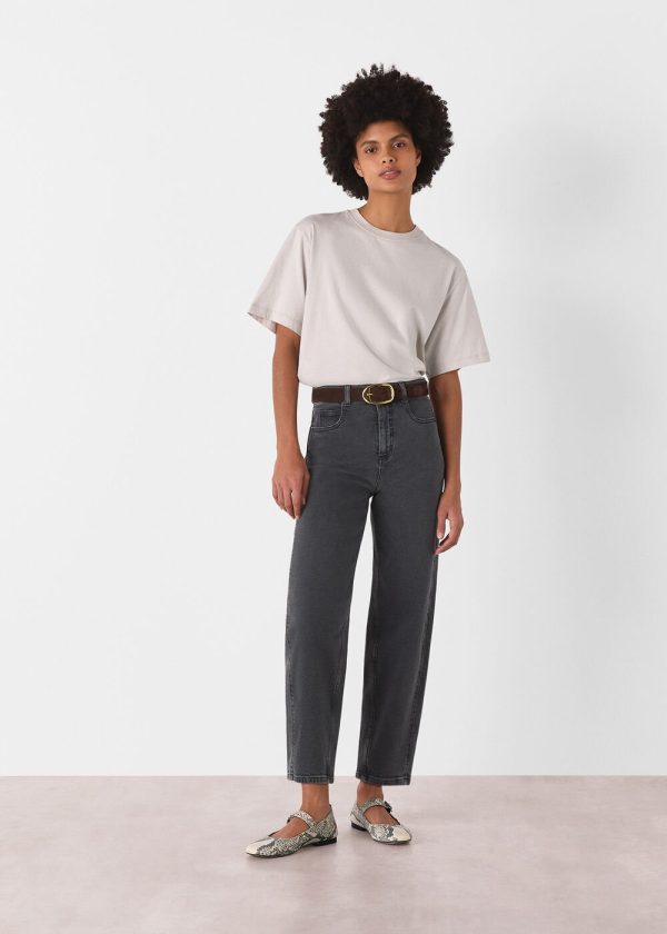 Discover our must-have Barrel Leg Jeans, featuring a contemporary silhouette that delivers effortless versatility. Expertly crafted from premium grey stretch denim, these jeans create that signature barrel shape with a high-waist fit, relaxed thigh comfort, and stylish ankle-length crop.