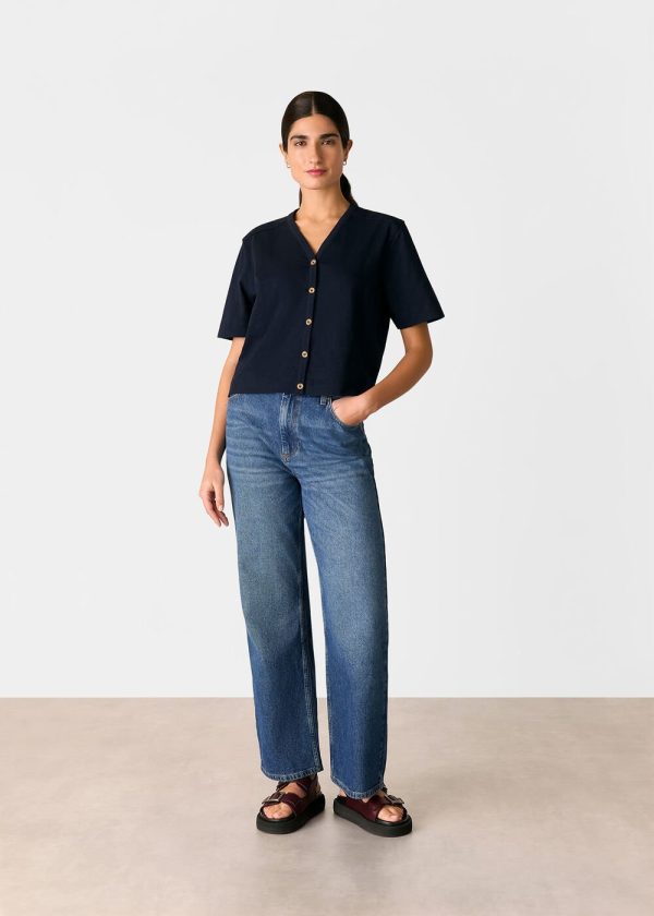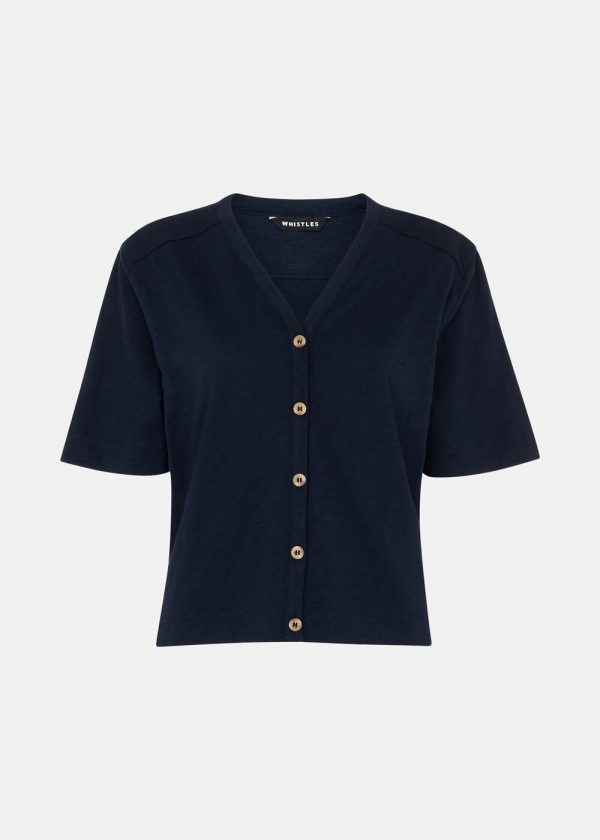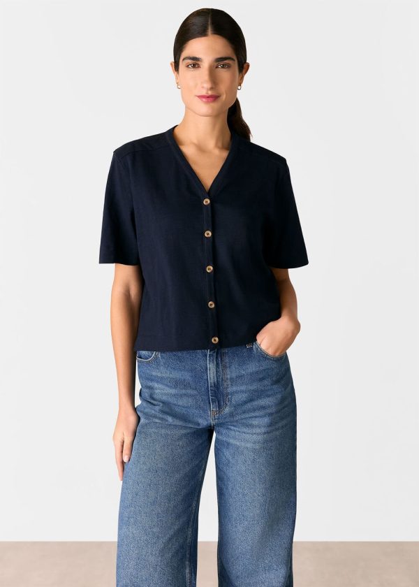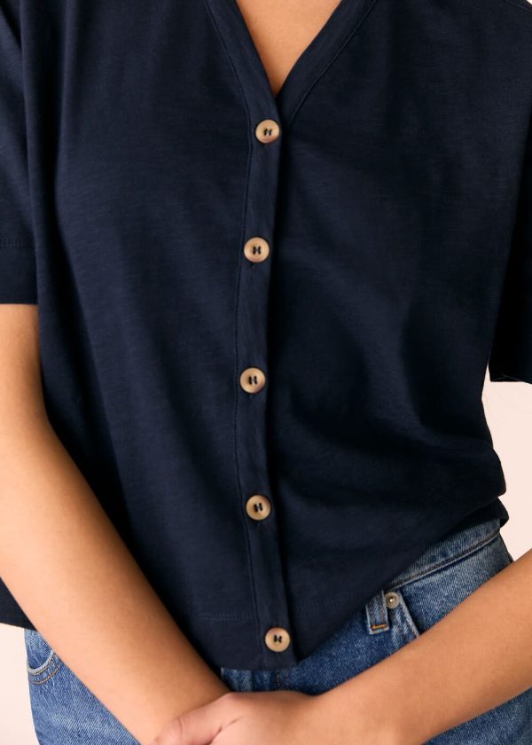 Whistles Women’s Navy Ella V-Neck Button-Down Tee