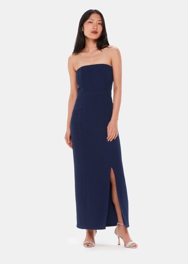 Elevate your special occasion wardrobe with our beautifully designed strapless maxi dress, featuring a flattering fitted silhouette and sophisticated leg slit. This versatile piece transitions seamlessly from wedding season to any formal event, making it the perfect choice for bridesmaids and wedding guests alike.