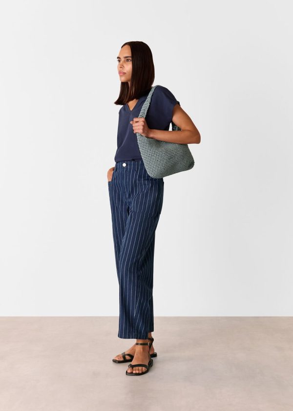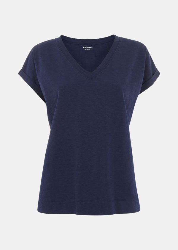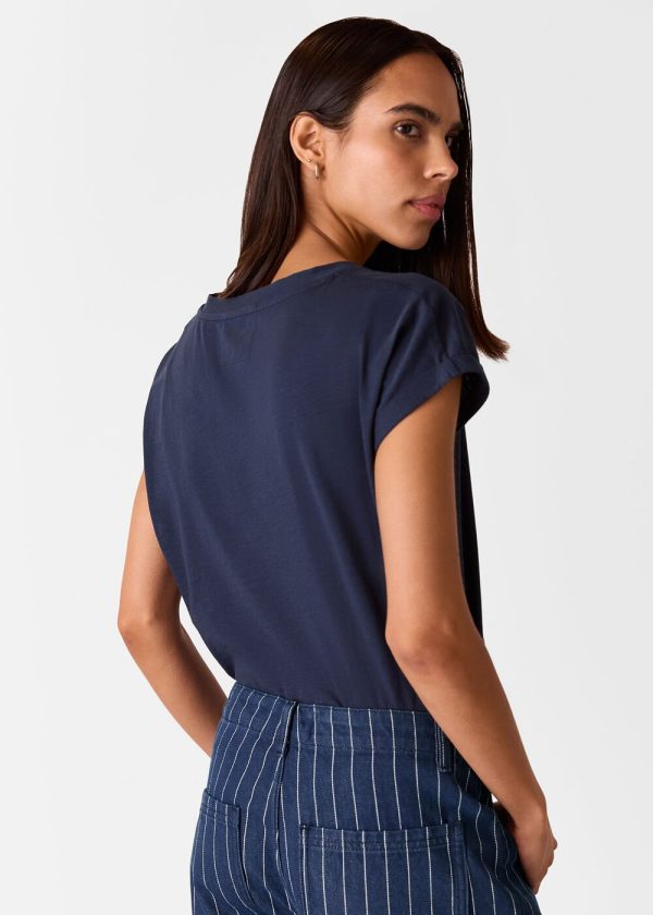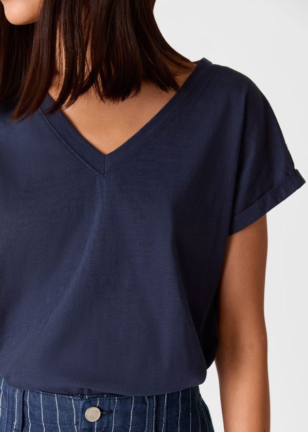 Whistles Women’s Navy Willa V-Neck Organic Cotton Tee