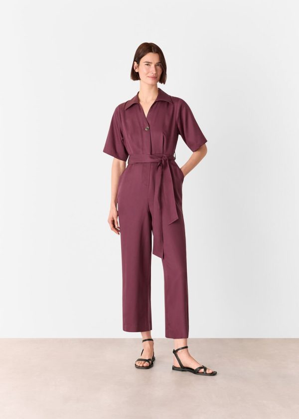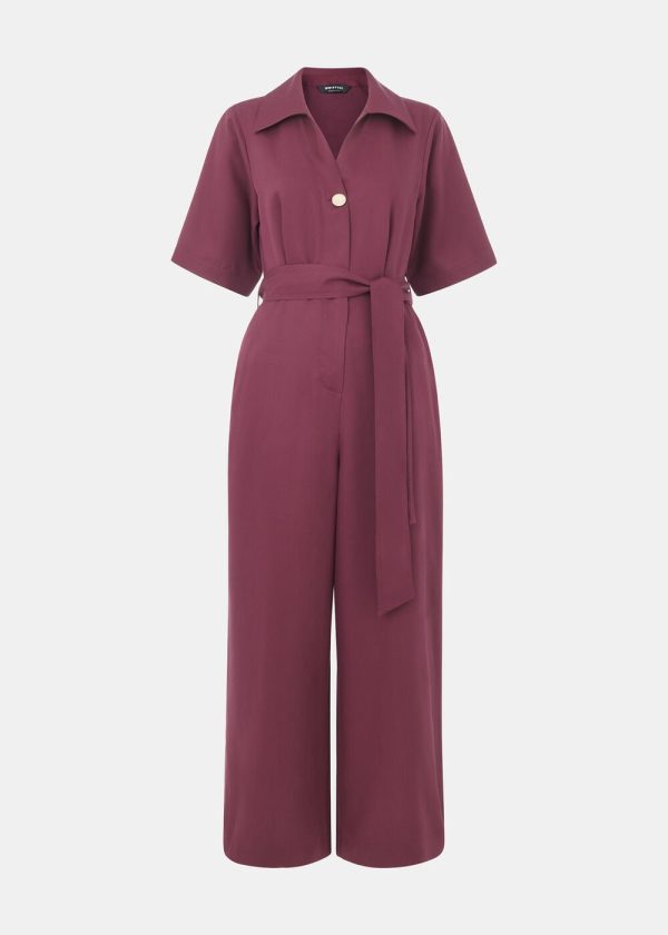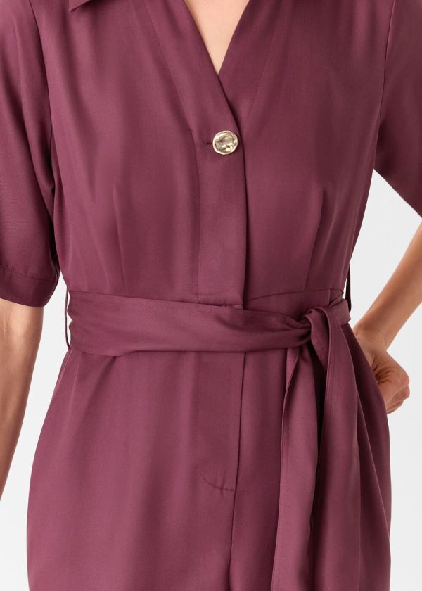 Experience ultimate comfort with our effortlessly chic Button Front Jumpsuit, designed for versatile everyday wear. This stunning piece features a sophisticated plum hue, complete with a classic collar, flattering V-neckline, and elegant button detailing. The included belt allows you to define your waistline, creating the perfect transitional season outfit that transitions seamlessly from day to night.