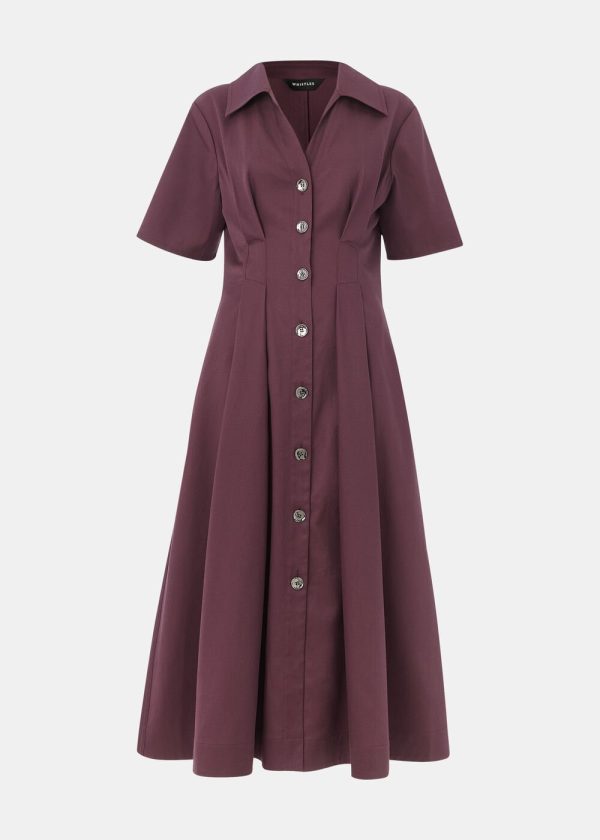 Elevate your wardrobe with this season’s standout piece – the Renee Button Shirt Dress delivers sophisticated style with its beautifully tailored silhouette. Crafted in a luxurious plum hue, this dress features a timeless collar, flattering V-neckline, and classic button-front design. The cinched waist flows into a graceful flare, creating the perfect combination of polished elegance and everyday comfort that moves with you.
