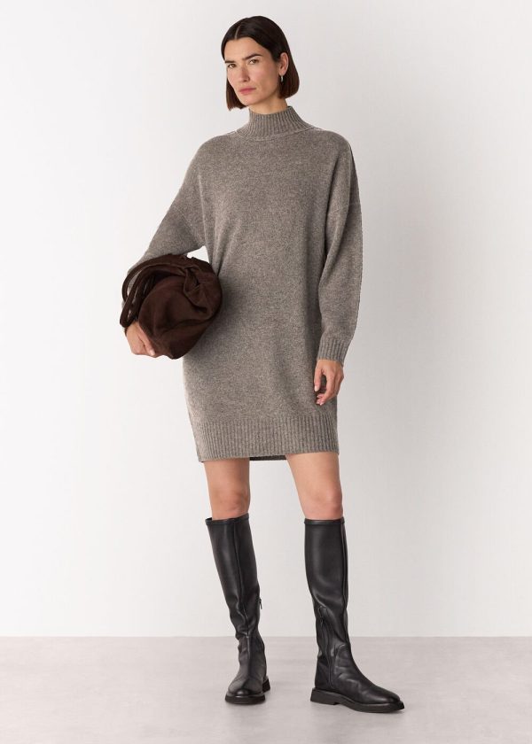 Discover Whistles’ commitment to creating timeless wardrobe essentials with our Funnel Neck Wool Mini Dress. Expertly tailored from premium wool in a comfortable regular fit, this dress features a versatile taupe hue, cozy funnel neckline, and sophisticated ribbed detailing at the collar and sleeves for elevated everyday style.