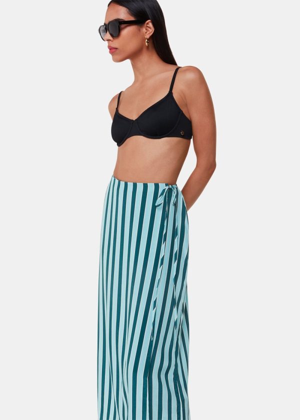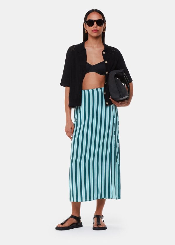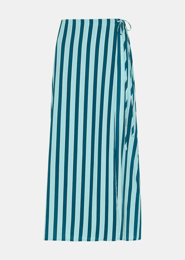 Elevate your summer wardrobe with this beautifully fitted midi skirt featuring a striking tonal stripe pattern that commands attention. The elegant wrap design with adjustable tie waist creates a flattering silhouette that moves with you. Complete your look by pairing it with our matching top for a perfectly coordinated ensemble.