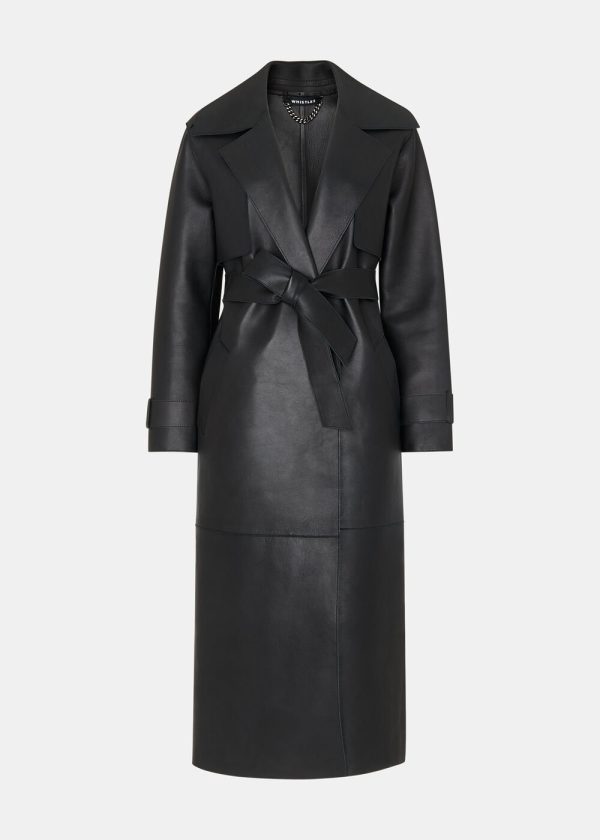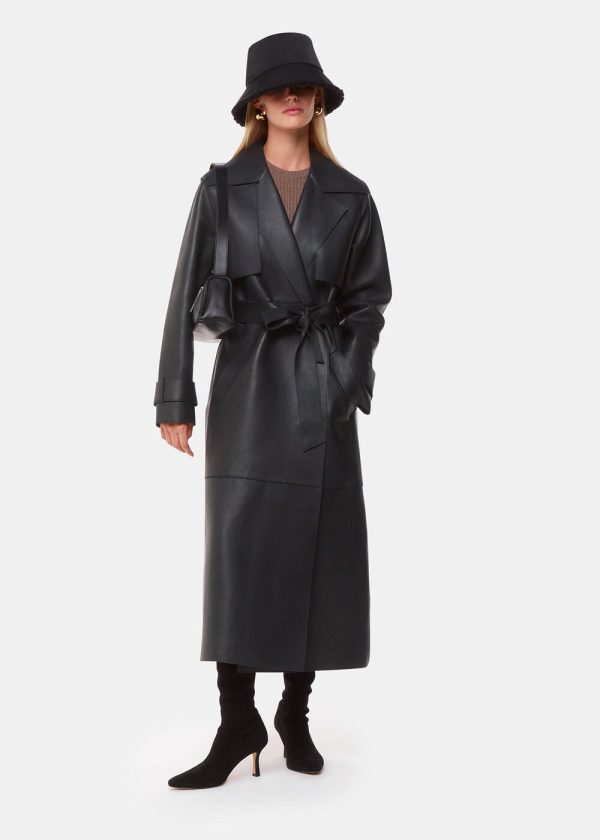 For Autumn Winter 2024, our signature Clean Bonded Jacket receives a fresh update to a classic trench coat design. Expertly crafted from soft black leather, this style is cut to a midi silhouette. See its exaggerated lapel, oversized pockets, double-breasted, and wrap-tie fastening—a luxurious design that promises enduring style for the years to come.