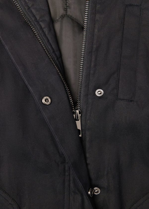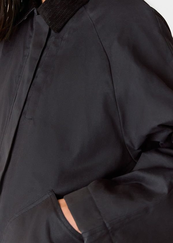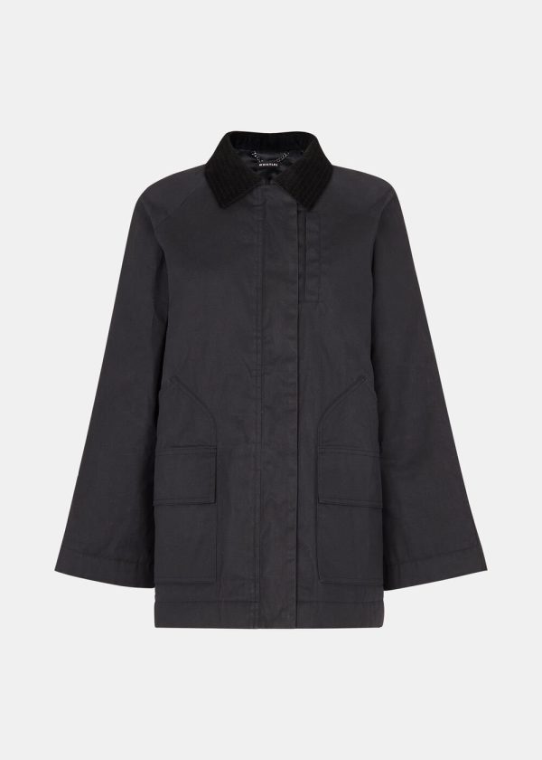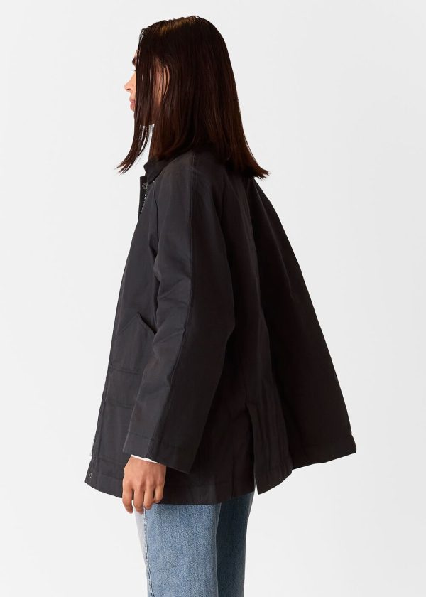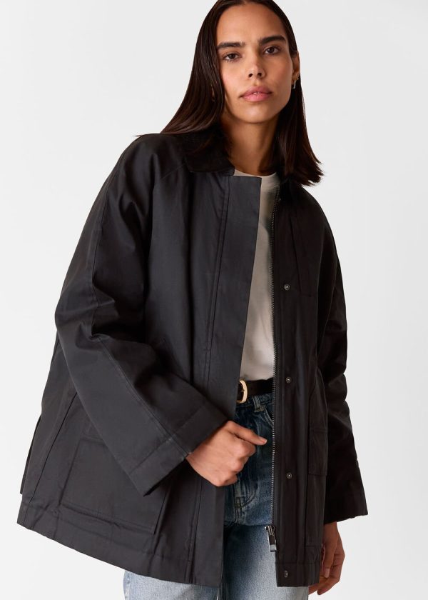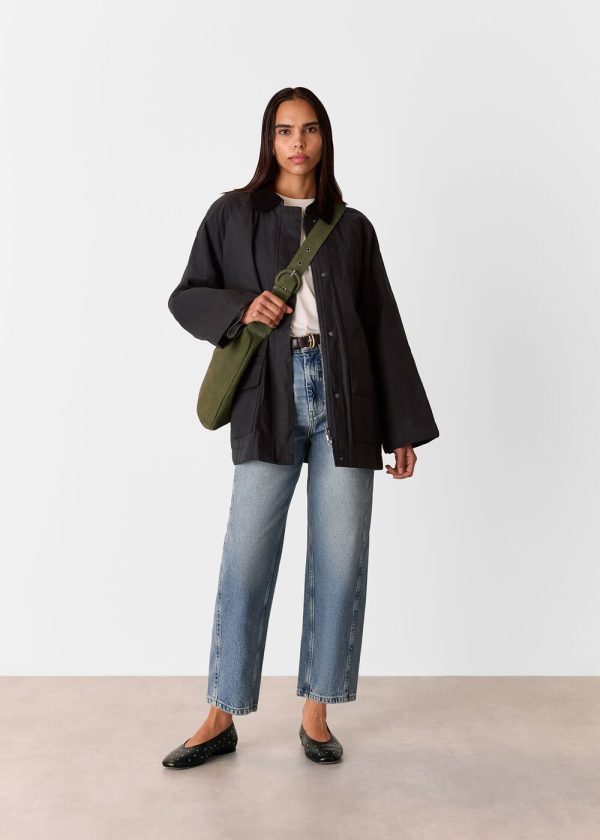 Designed in a waxed finish, this coat comes in a relaxed boxy fit and has visible front pockets. Casual yet elevated all at once, it’ll go with signature denim, chunky knits and boots this winter.