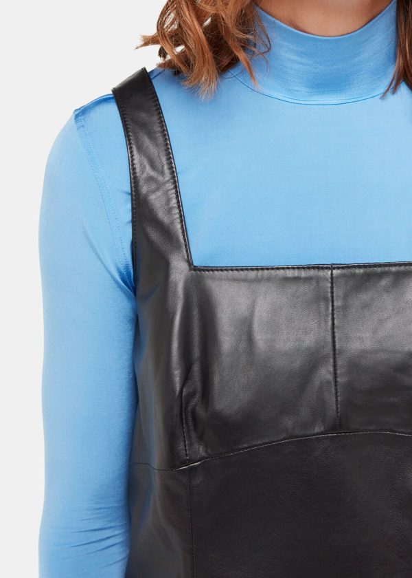 Cut from long-lasting leather, this dress is inspired by classic pinafores, but the square neckline and leather material feel undoubtedly modern. It’s cut to a mini length and has a relaxed silhouette making it easy to wear it with a T-shirt and loafers in the daytime, switching to heels and gold jewellery by night.