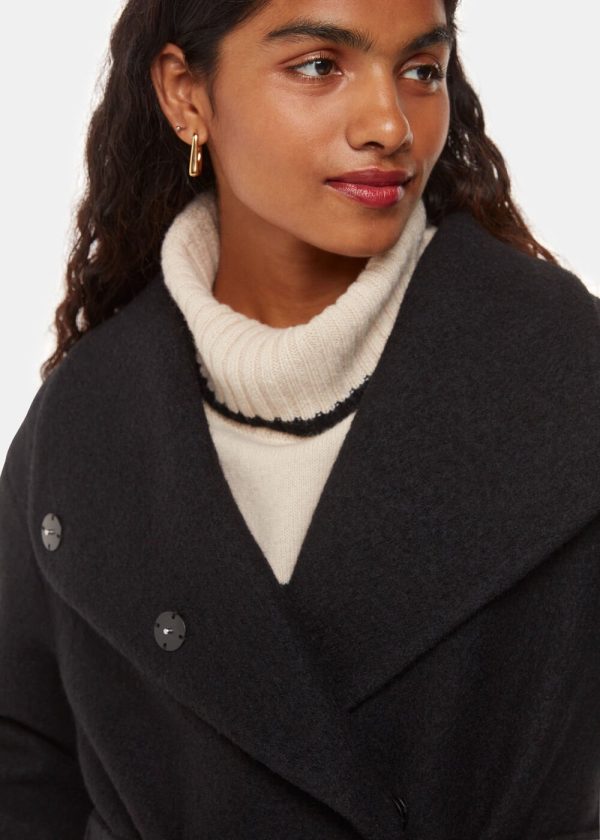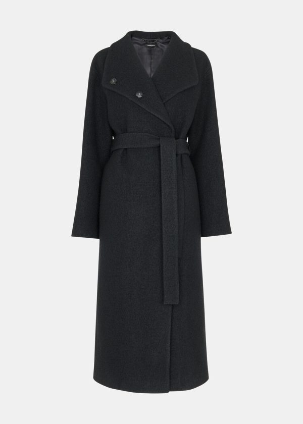 Our Morgan Funnel Neck Coat is defined by its elegance and exceptional warmth for the colder months. Crafted in a versatile black shade, this coat serves as an effortless wardrobe essential for both everyday wear and special occasions. The collar can be styled either draped over the shoulder or fastened as a funnel neck, while the subtly offset button and belt fastening add a polished finish. Wrap yourself in its warmth and sophistication.