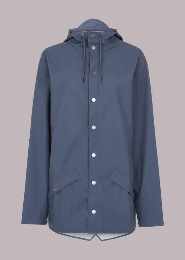 Inspired by classic rainwear, this jacket is crafted from a wateproof lightweight fabric with a matte and smooth finish. In a staple blue shade and relaxed silhouette, it boasts adjustable cuffs, a fishtail hem at the back, and an adjustable hood with a practical cap function. Style yours over all your casual outfits throughout the seasons.