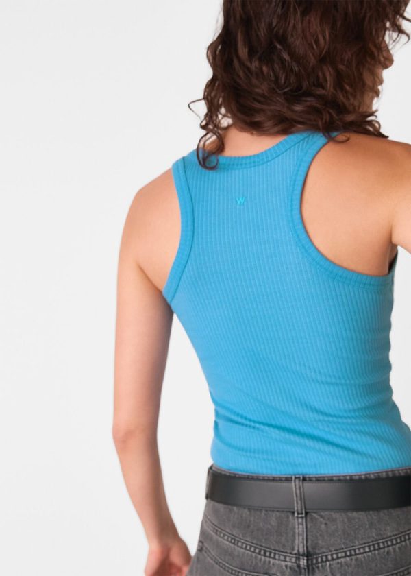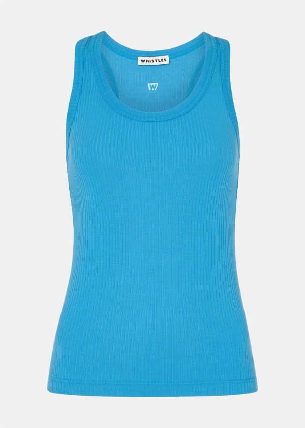 A scoop vest is a true spring-summer essential—perfect worn solo or as a versatile base layer. Our latest version offers a fresh update in a vibrant blue shade, complete with a ribbed finish for added comfort and stretch. Style it tucked into high-waisted trousers or skirts for an effortless warm-weather look.