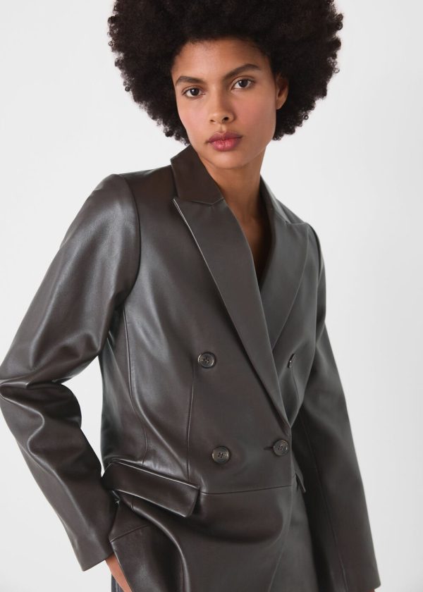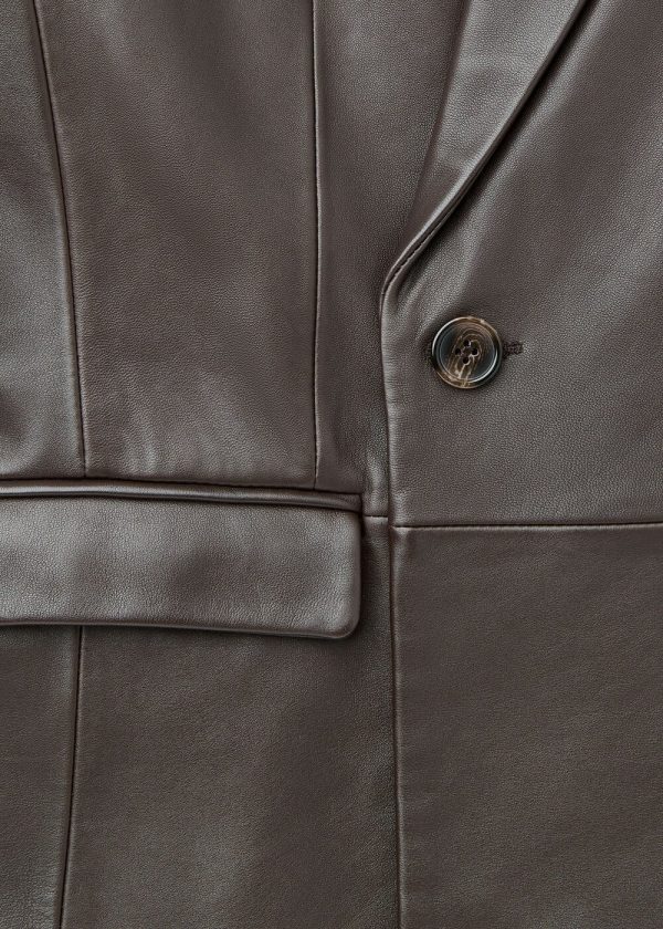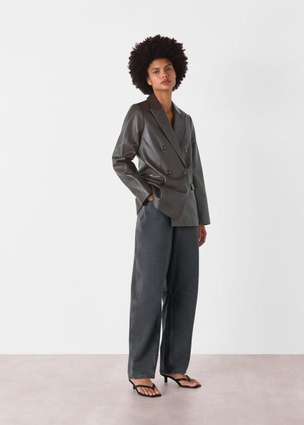Crafted from soft, buttery leather, this waisted, double-breasted blazer is one you’ll be reaching for over and over again. Mix and match textures by styling it over a lace dress, knitwear, or cotton t-shirt, and finish with your favourite choice of footwear.