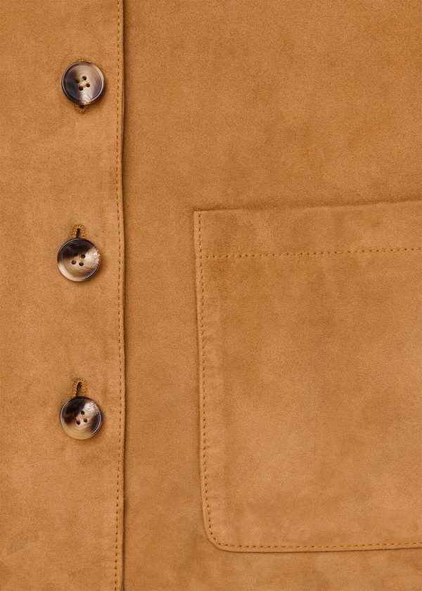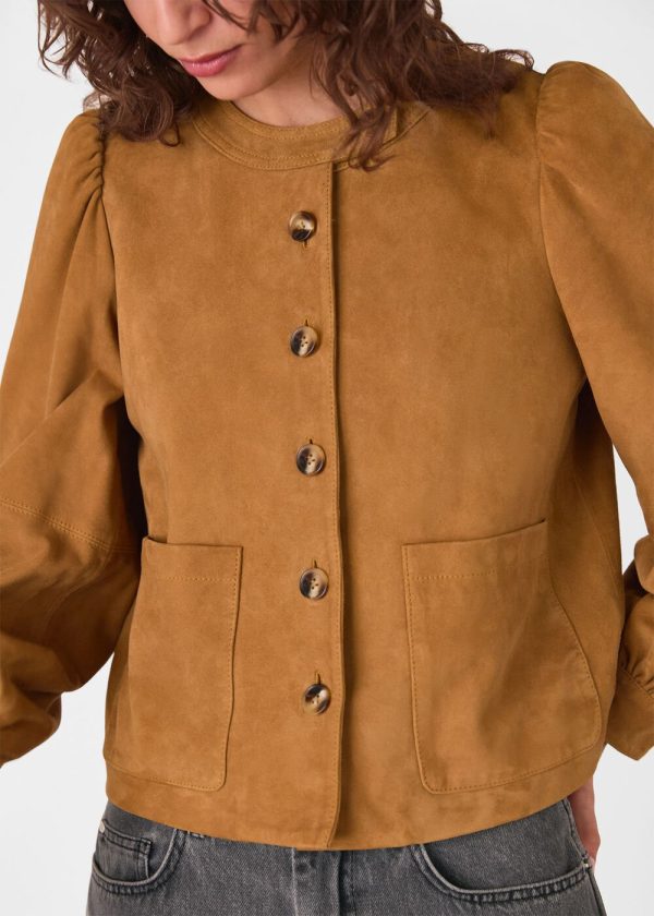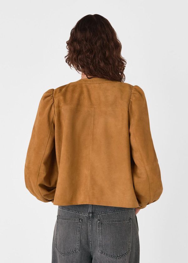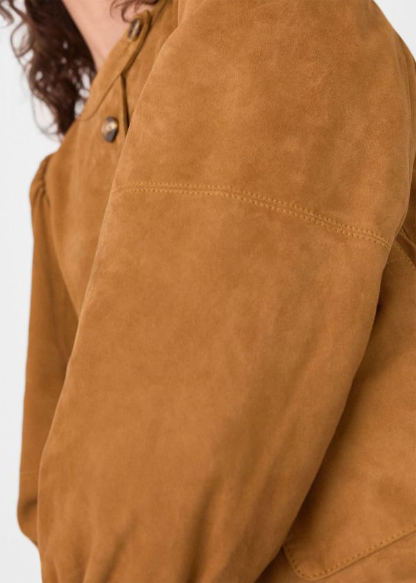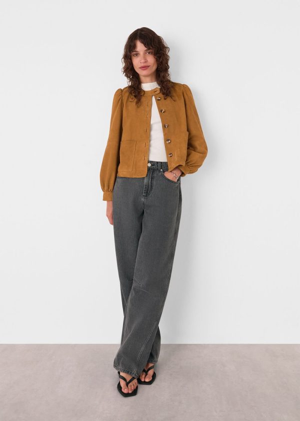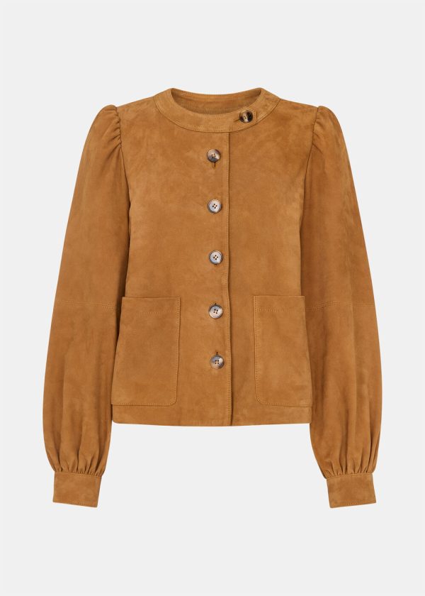 This spring-summer, embrace timeless style imbued with modern elegance, like our Button Front Suede Jacket. Its soft suede material arrives in an endlessly wearable camel tone, elevated further with its round neckline, side pockets and puff sleeve detailing.