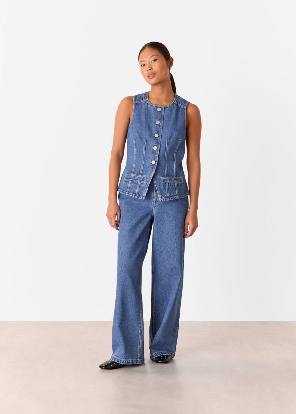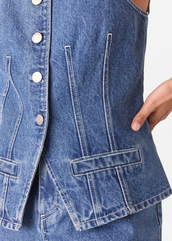 Our Petite Collection is meticulously crafted with precise adjustments to ensure an impeccable fit for smaller frames. Beyond cropping, every design element—from the sleeves to the waist and hips—has been reconsidered to ensure each measurement fits.Our latest waistcoat gets a fresh update in denim, bringing modern sophistication to your spring-summer wardrobe. It’s crafted from an endlessly wearable medium-wash denim, with dart detailing to enhance its silhouette, a round neckline and an adjustable buckle at the back. Versatile and easy to wear, it pairs effortlessly with anything for a chic, laid-back summer look.