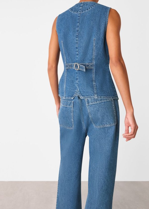 Once reserved for formal occasions, waistcoats are now a staple in the modern, everyday wardrobe. Introducing our latest to the core collection: the Denim Slim Fit Waistcoat. It’s crafted from an endlessly wearable mid-wash denim to a fitted shape, complemented with shaping body darts, denim buttons and a back adjuster buckle. Whether paired with jeans for a laid-back look or smart trousers for a contemporary twist, it’ll effortlessly elevate your everyday style.