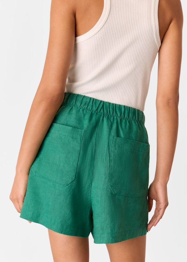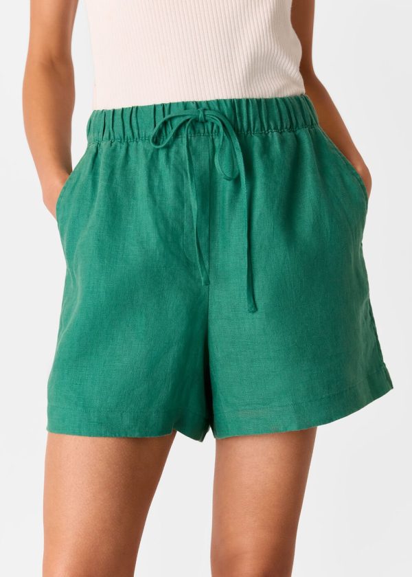 Our latest Linen Elasticated shorts come in a timeless green shade and a relaxed fit — perfect to style all summer for a comfortable base. Style it with any relaxed white tees and complete the look with trainers, sandals or heels, when the moment requires.