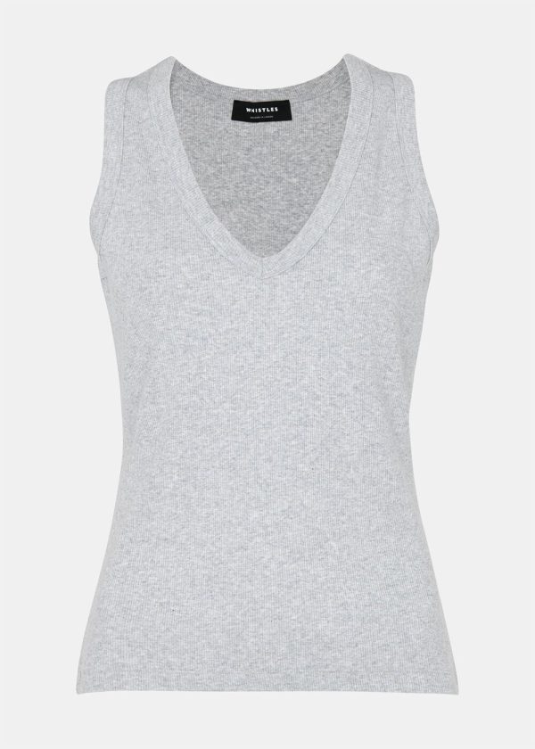 Women Grey Marl Ellis V Neck Jersey Vest | Whistles Tops