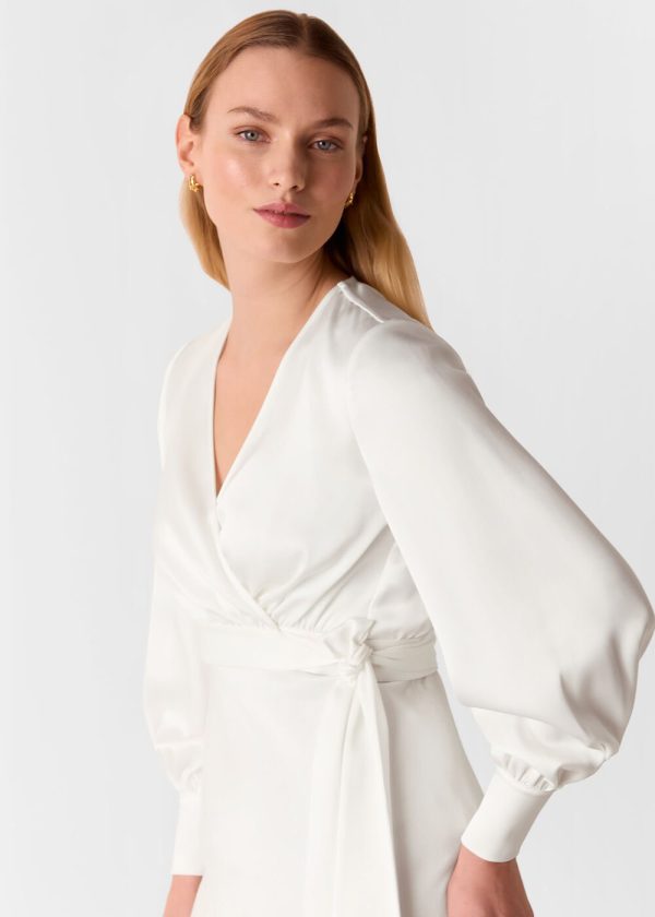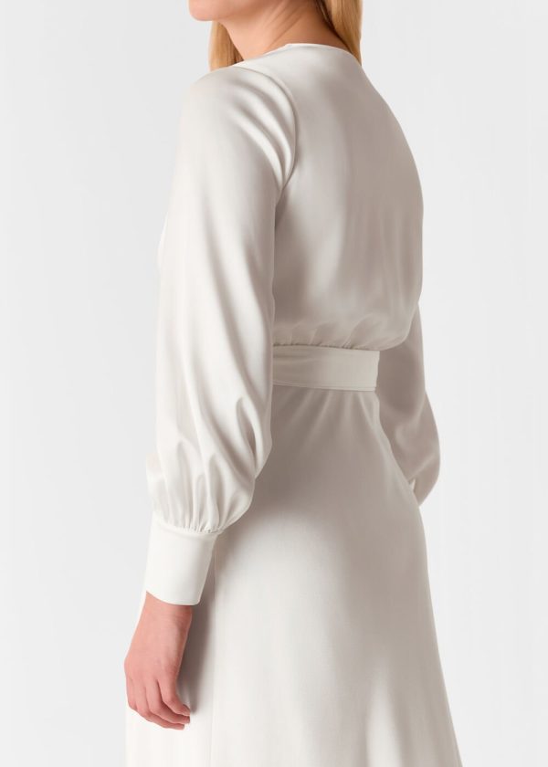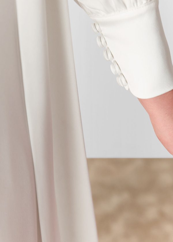 For a less traditional approach, style out separates at your wedding this year. Our Lily Bridal cover up works as a top or an extra layer to slip over your dress. It comes with cuff details, long sleeves, a confident V-neck, making for a design that will never go out of style. Pair it with a pair of tailored trousers or a bias-cut skirt for the ultimate effortless approach.