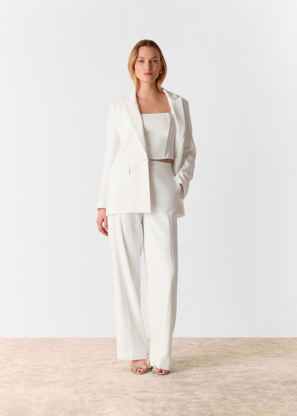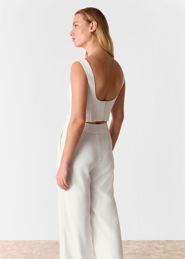 Forgo tradition and make a modern statement at your wedding with sleek separates. Our bridal top has been designed in a structured corset style with a square neck and a low scoop shape at the back. Pair it with our Andie Bridal Trousers and throw on our Andie Blazer for ultimate effortlessness.
