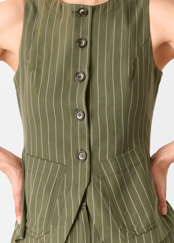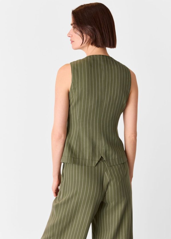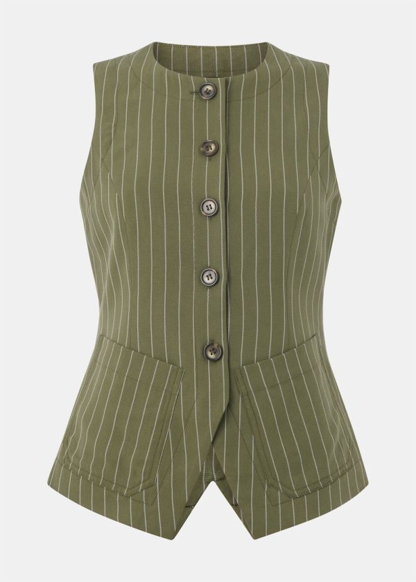 Women Khaki/Multi Lottie Pinstripe Waistcoat | Whistles Tops