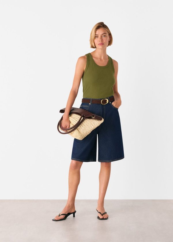 Wardrobe staples call for versatility and effortlessness, and our Ultimate Rib Scoop Vest is the perfect example. It’s designed in an endlessly wearable shade of khaki, complemented with a classic scoop neck and ribbed details for added comfort.