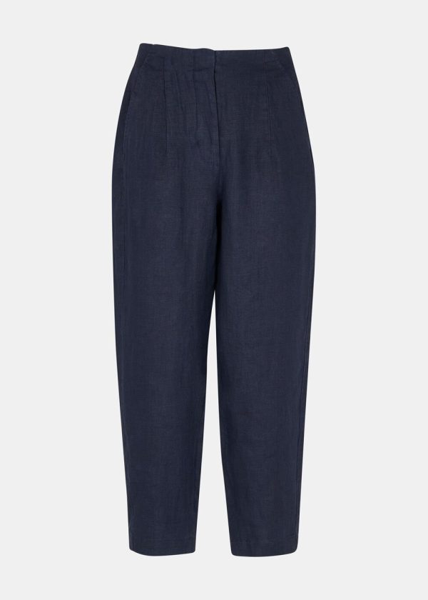 These Linen Barrel Leg Trouser will elevate your everyday styles. Crafted for comfort in a relaxed fit, and is designed with a high waist silhouette for elegantly enhancing your length. Cut from a timeless shade of navy, they look effortless when paired with a relaxed tee and ballet pumps.