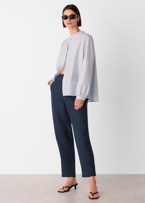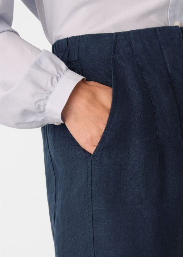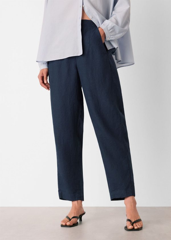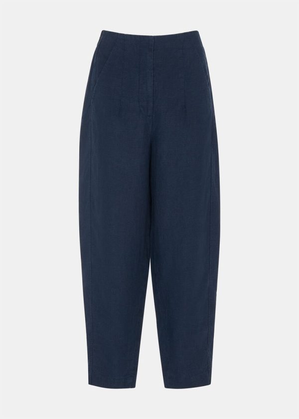 Our Barrel Leg silhouette is a modern favourite, and this version is crafted from linen for effortless summer ease. They’re designed in a timeless shade of navy for versatile styling, with their barrel leg shape — sitting high on the waist, fitting looser through the thigh and cropping at the ankle — giving a modern look.