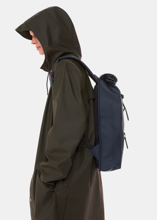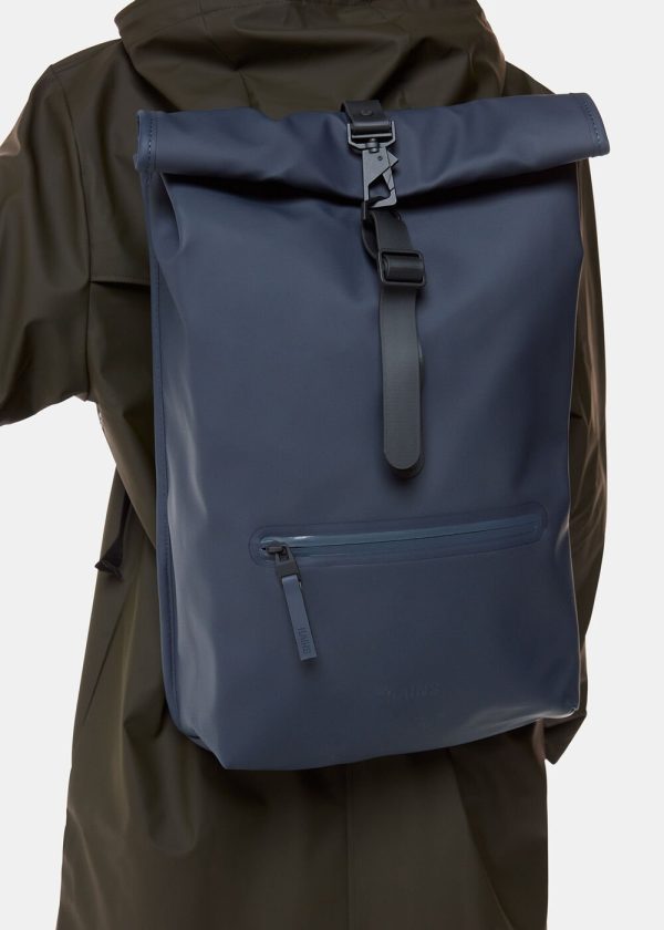 The Rains Rolltop Rucksack is a dependable city staple that’s perfect for commutes on bike or foot. Characterised by a rolltop opening and cycle-ready features, the bag is carefully designed to keep precipitation out when travelling from one place to another. To protect essentials from rain, fold the rolltop into a tight scroll and secure using the signature carabiner. The bag features a single main compartment and the exterior includes a side-access laptop pocket and a front zipper pocket.