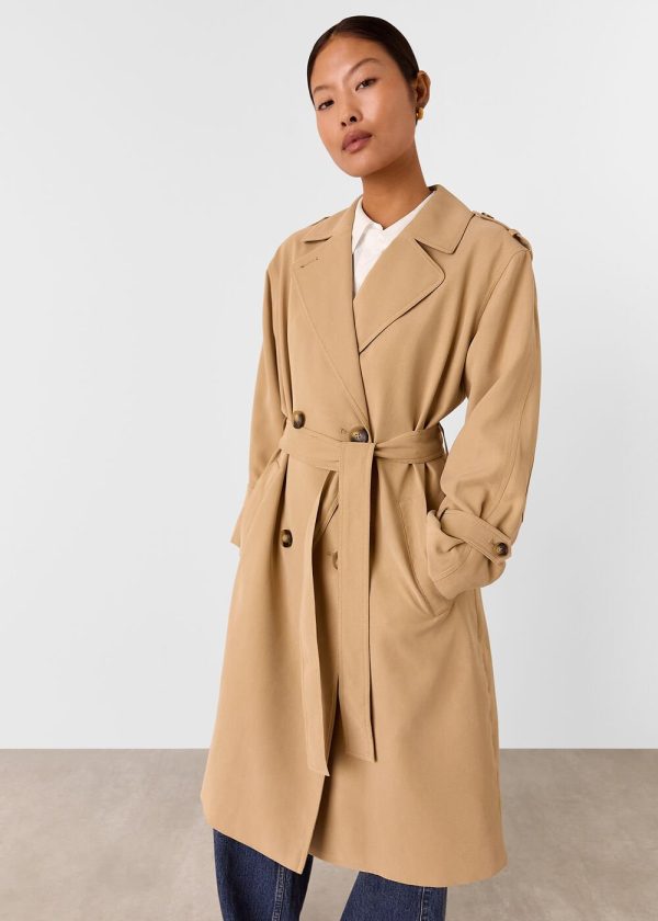 A trench coat will be your tool for transitioning into spring-summer, and our Riley style is a wardrobe essential. Cut to a mid length, it comes in a relaxed silhouette and a double-breasted front. Style yours with everything from printed dresses and skirts, to jeans and tailored trousers.