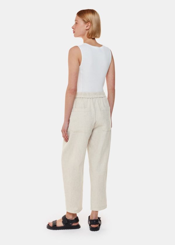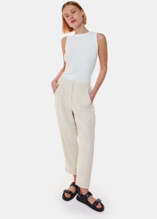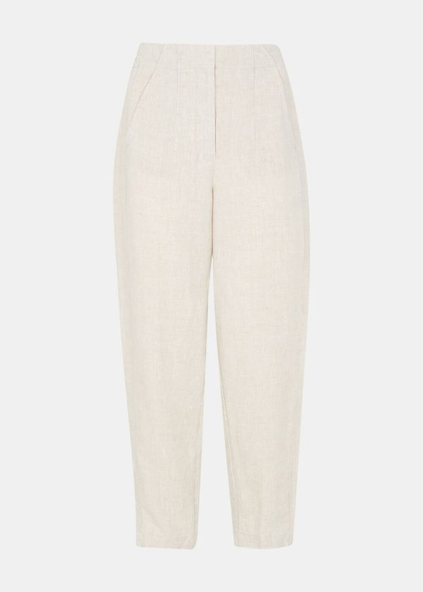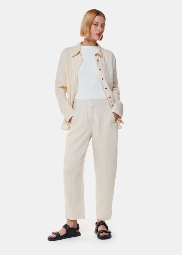 These Linen Barrel Leg Trouser will elevate your everyday styles. Crafted for comfort in a relaxed fit, and is designed with a high waist silhouette for elegantly enhancing your length. Cut from a warm shade of oatmeal, they look effortless when paired with a relaxed tee and ballet pumps.