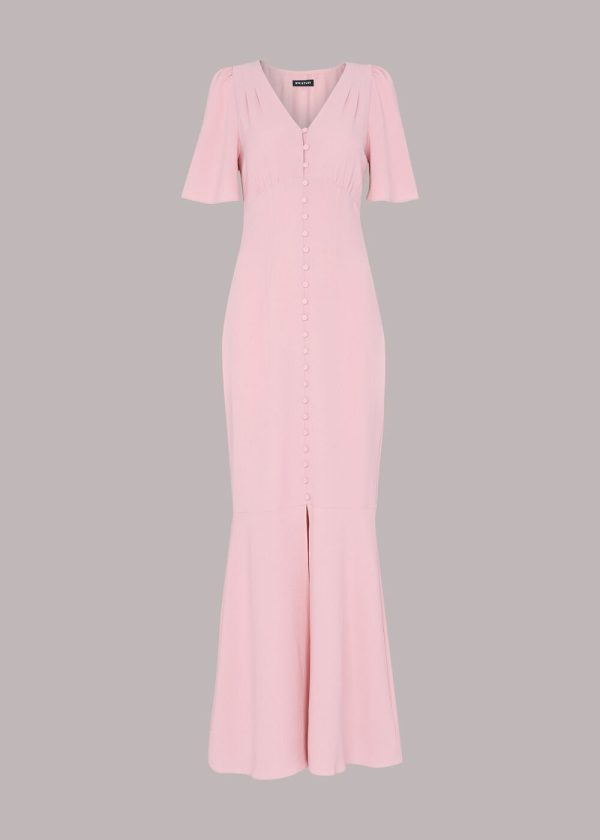 Make an entrance at special events in our most elegant dress yet. The Molly is fitted throughout the body with a fishtail hem that enhances your curves and short sleeves that float so effortlessly. Finished with a slit at the hem and button-front detail, all it takes to complete the look is the right heels and jewellery.