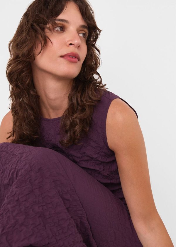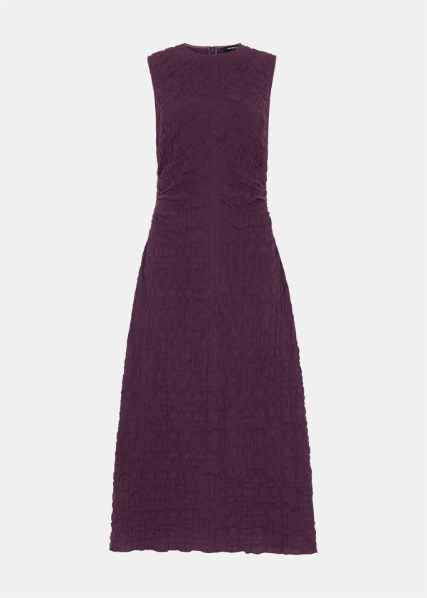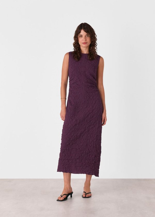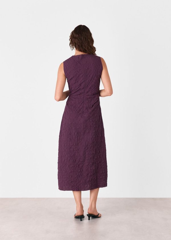 Our Lori Textured Midi Dress is versatile and elegant, bringing a subtle, elevated touch to every occasion. It’s refreshed in a sophisticated plum shade, complemented with ruched detailing all over, a round neck and a sleeveless cut, making it perfect for refined spring-summer looks.