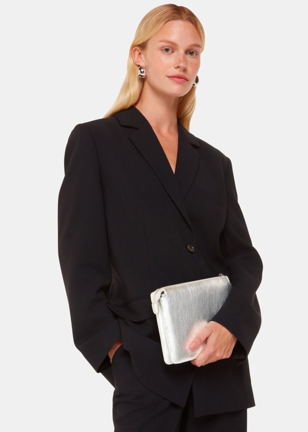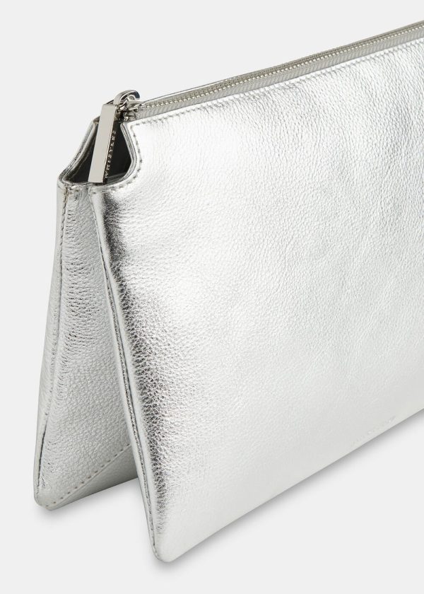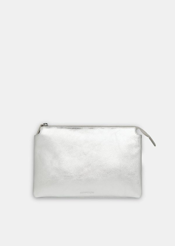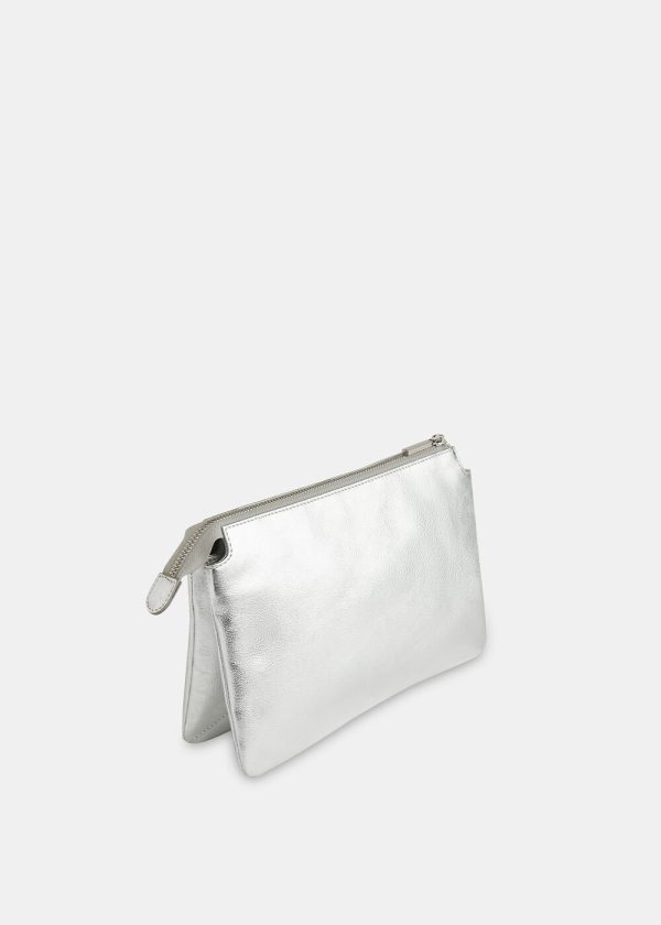 Our newest clutch bag is the ultimate finishing piece to your occasion looks. Designed in a compact shape, with a double pouch detail that offers more space for your essentials, it’s fashioned from leather in an opulent silver hue that will go with everything.