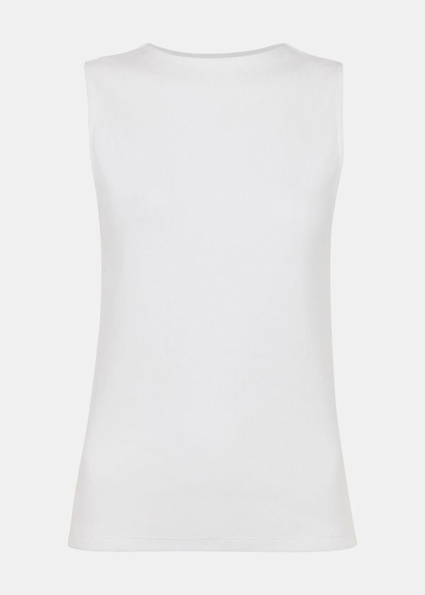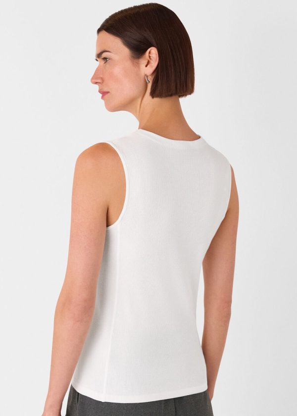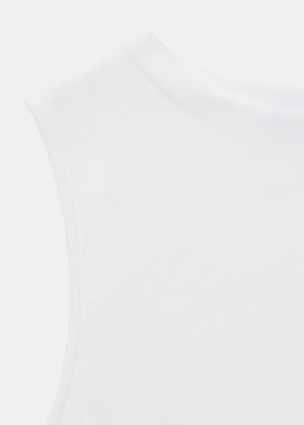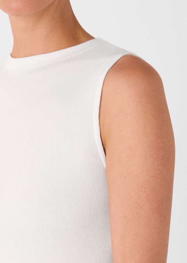 Designed in a rib finish, this tee is an easy yet elevated wardrobe staple. Designed with a high crew neck and a sleeveless finish, pair it with everything from midi skirts to denim shorts and signature jeans.