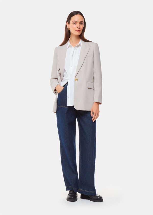 A boyfriend blazer in a relaxed fit is a modern staple to keep returning to. Cut from neutral crepe, this blazer has an boxy boyfriend silhouette and peak lapels. Style with dressed-down denim.
