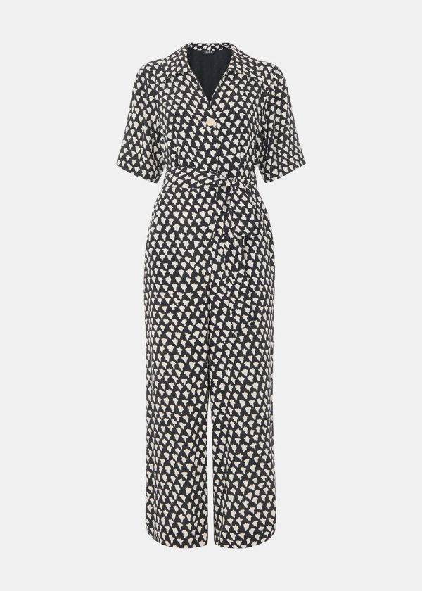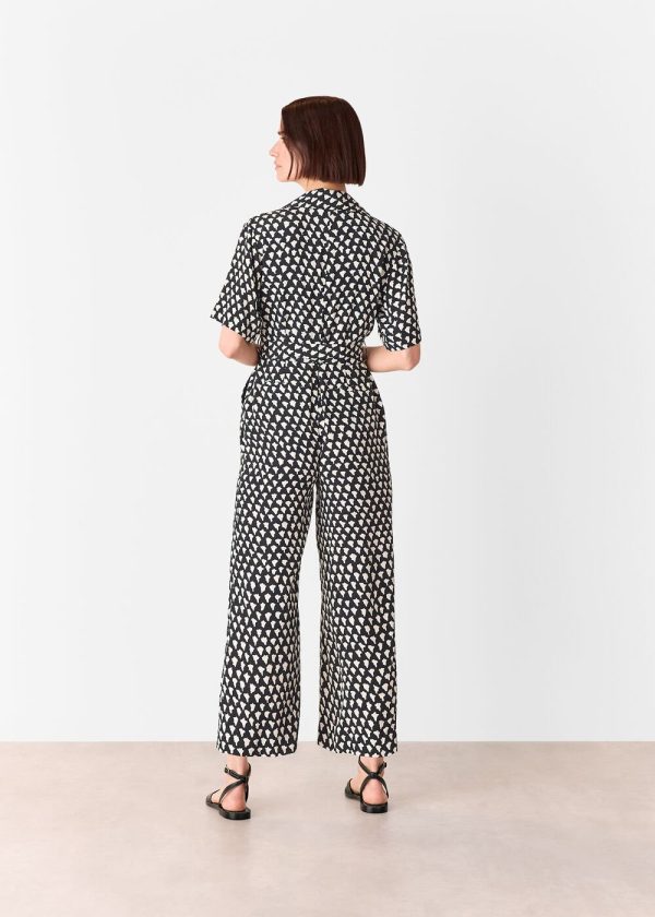Elevate your wardrobe with our must-have Abstract Triangle Jumpsuit, featuring a stunning geometric print that makes a bold fashion statement. Perfect for weekend adventures or daytime social gatherings, this versatile piece offers effortless style with its contemporary design. The eye-catching abstract triangle pattern layers beautifully over a black base, complemented by a relaxed-leg silhouette, short sleeves, and a waist-defining belt that creates a flattering fit.