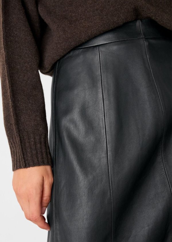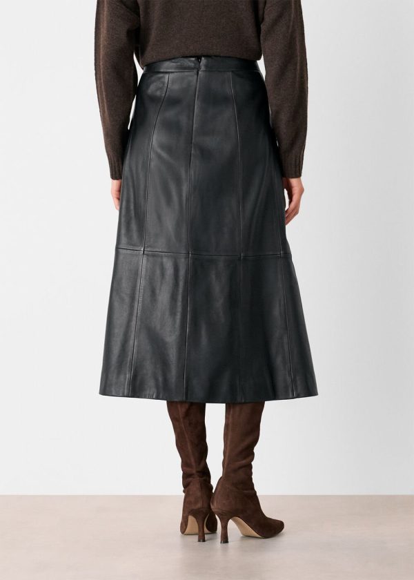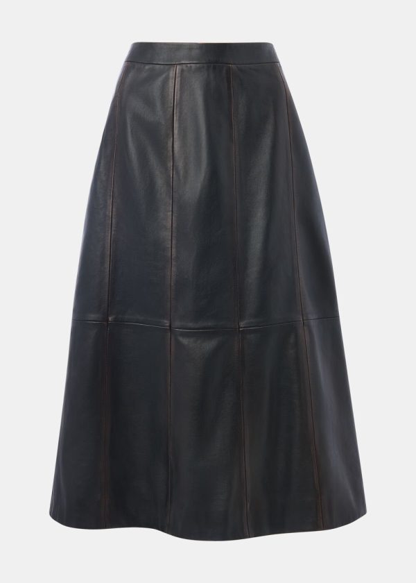 Elevate your wardrobe with our signature burnished leather midi skirt, designed to make a sophisticated statement. This exceptional piece features a universally flattering A-line silhouette that contours at the waist and gracefully flows toward the hem for effortless movement and comfort. The distinctive burnished finish creates depth and dimension, while subtle paneling details and a discreet back zip closure deliver polished sophistication. Perfect for transitioning from daytime elegance to evening allure, this versatile skirt pairs beautifully with everything from crisp blouses to cozy knits.