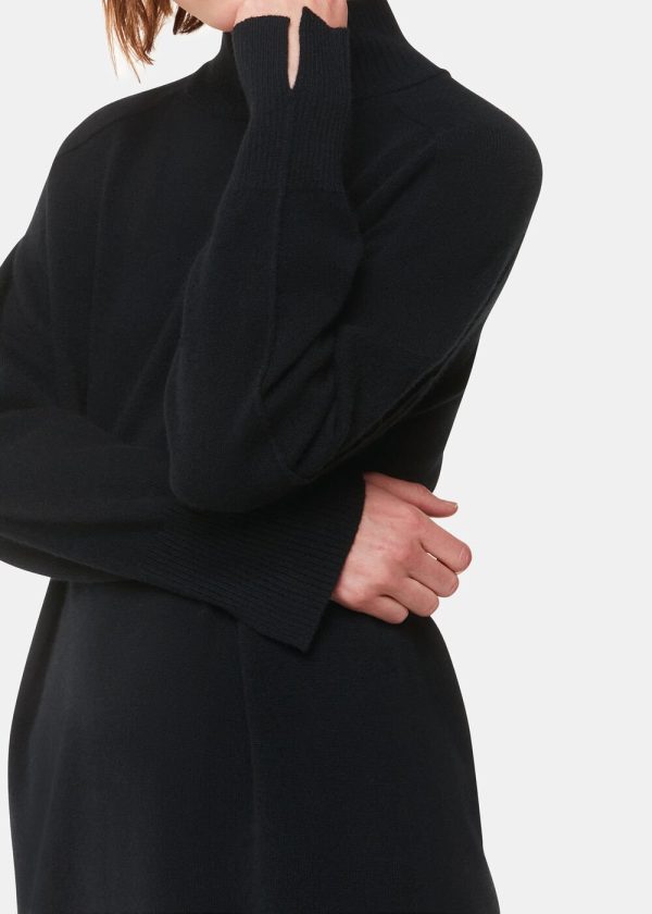 Whistles creates timeless wardrobe essentials designed to last season after season, and our Cashmere Funnel Neck Dress exemplifies this commitment to quality. Expertly crafted from premium traceable cashmere, this mini dress delivers exceptional softness against your skin with luxurious comfort you’ll appreciate all day long. In versatile black, it features a cozy mock neck for extra warmth and elegant ribbed detailing that maintains its perfect shape wear after wear.