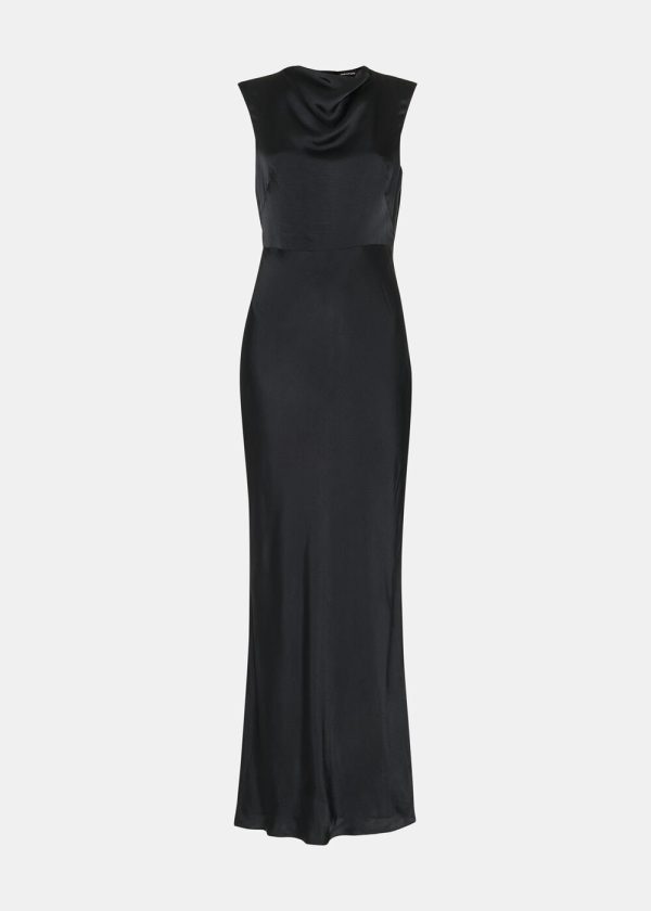 Discover your new go-to black dress with our stunning Cowl Neck Satin Dress. Designed for sophisticated evening wear, this dress delivers timeless elegance that commands attention at any special event. The dramatic cowl neckline and backless design create a captivating silhouette that ensures you’ll make a memorable entrance.