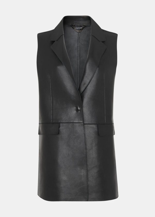 Experience exceptional craftsmanship with our Design Team’s precision-tailored creation. Inspired by our iconic Clean Bonded Jacket, the Edna Clean Bonded Waistcoat offers a sophisticated modern interpretation. Expertly constructed from premium 100% sheep leather, this vest delivers timeless elegance with its classic black finish, statement collar, and sleek sleeveless silhouette. Featuring two convenient front side pockets, it elevates your everyday style with confidence and versatile sophistication.